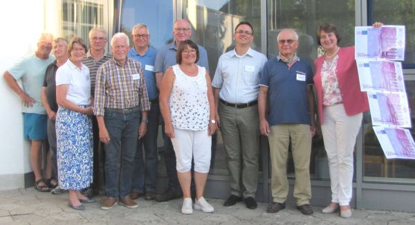 Bild von rechts: Bürgermeisterin Silke Höflinger mit der Spende, Leiter des Reparaturtreffs Herr Walter Schäfer, Herr Dr. Joseph Müller, Frau Ursula Kittelmann, Herr Boron Brakolf, Herr Markus Mattedi, Herr Dr. Gerhard Gruhler, Herr Sebalt Rilli, Frau Margot Mattedi, Herr Ludwig Schlecht und Herr Werner Kittelmann.